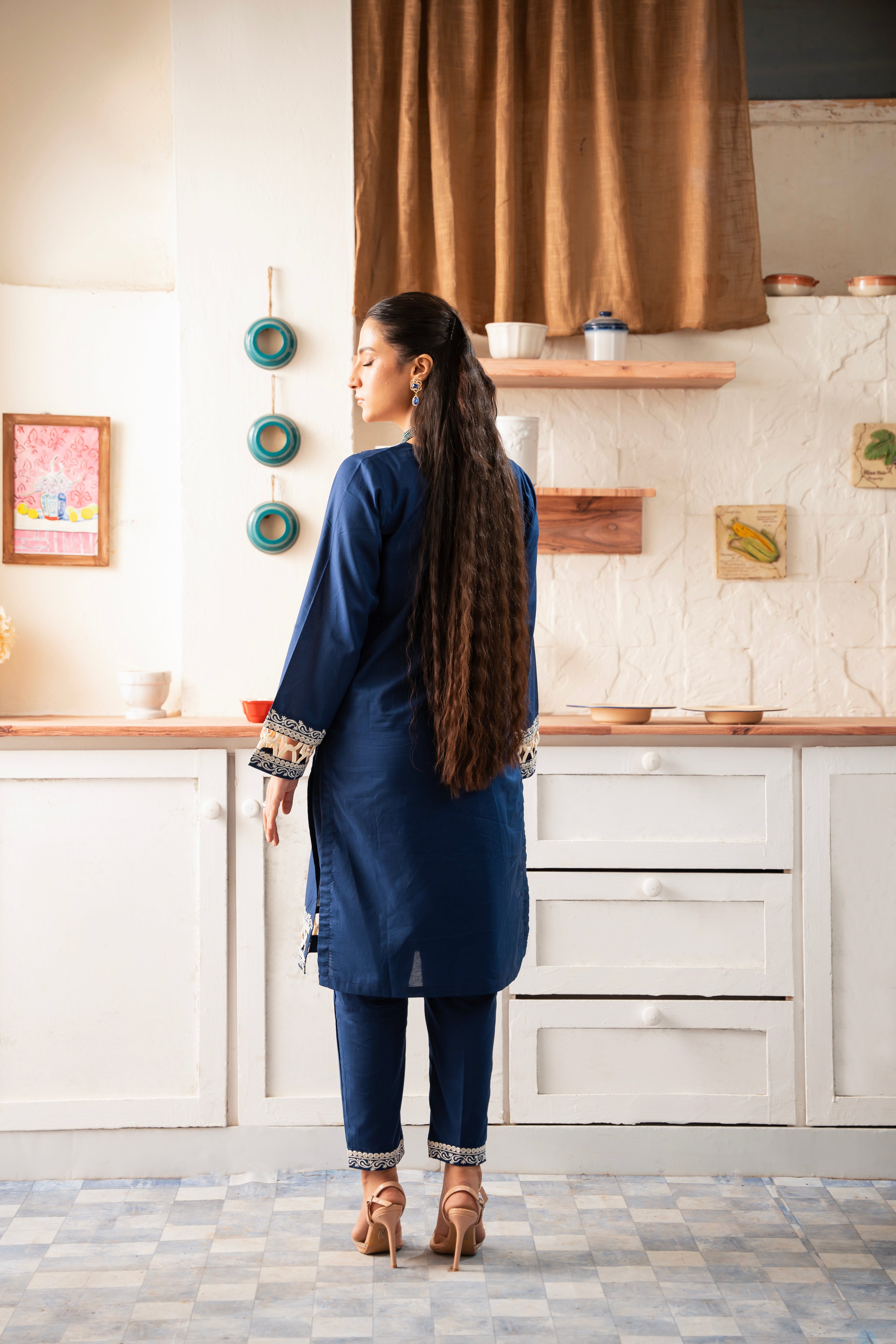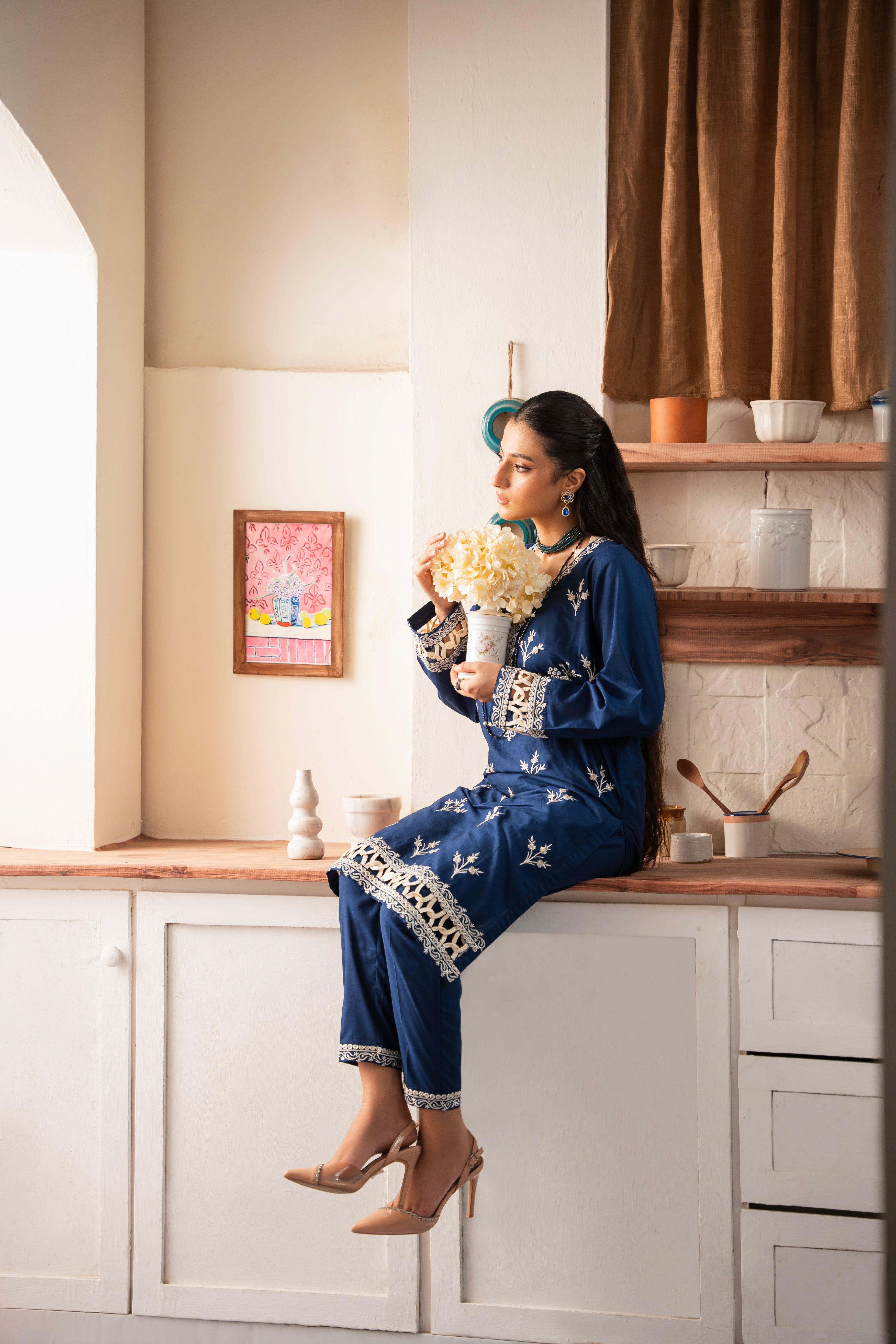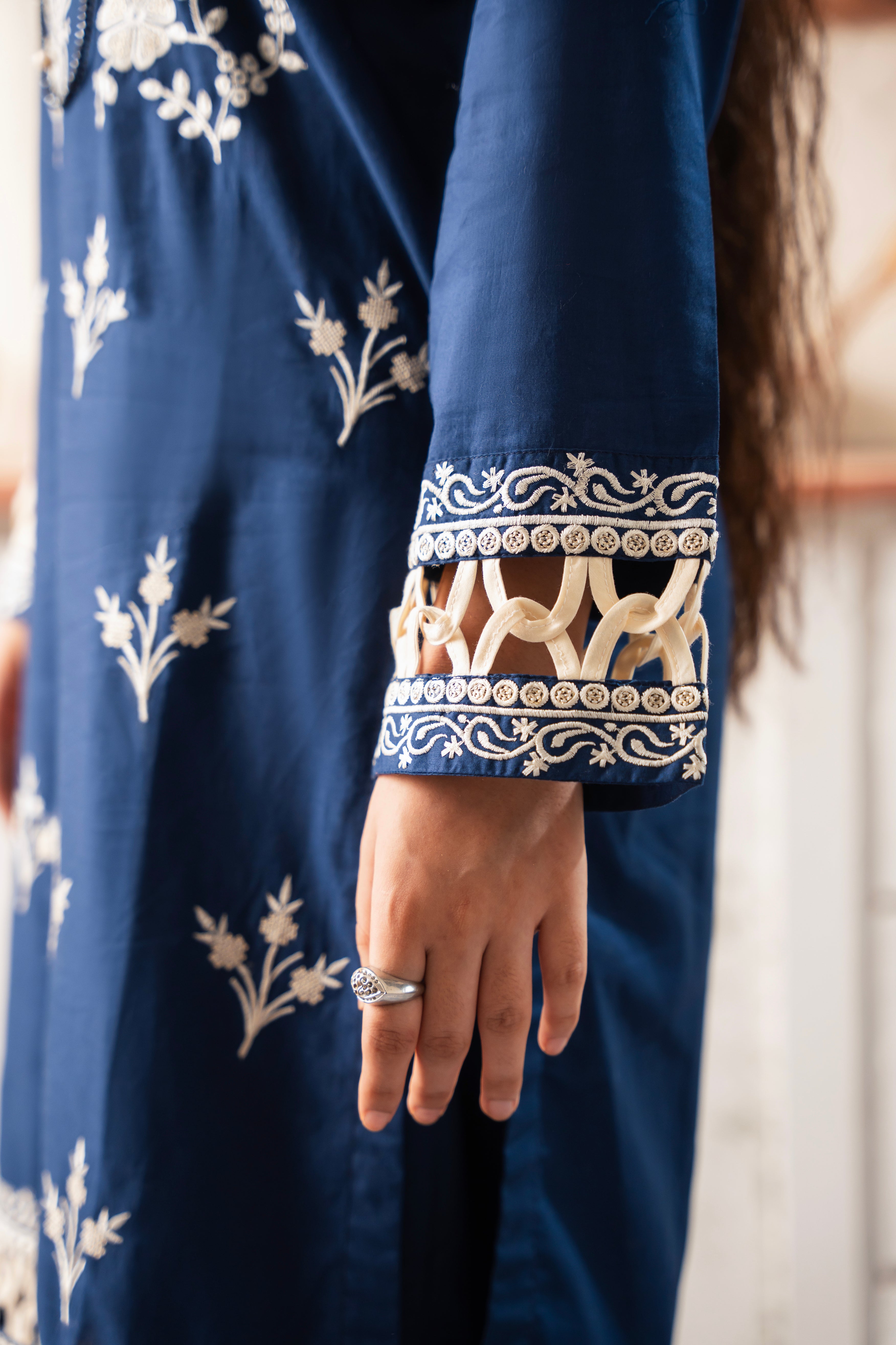 • It is adorned with embellishments along the front, with a beautifully detailed neckline and sleeve openings.