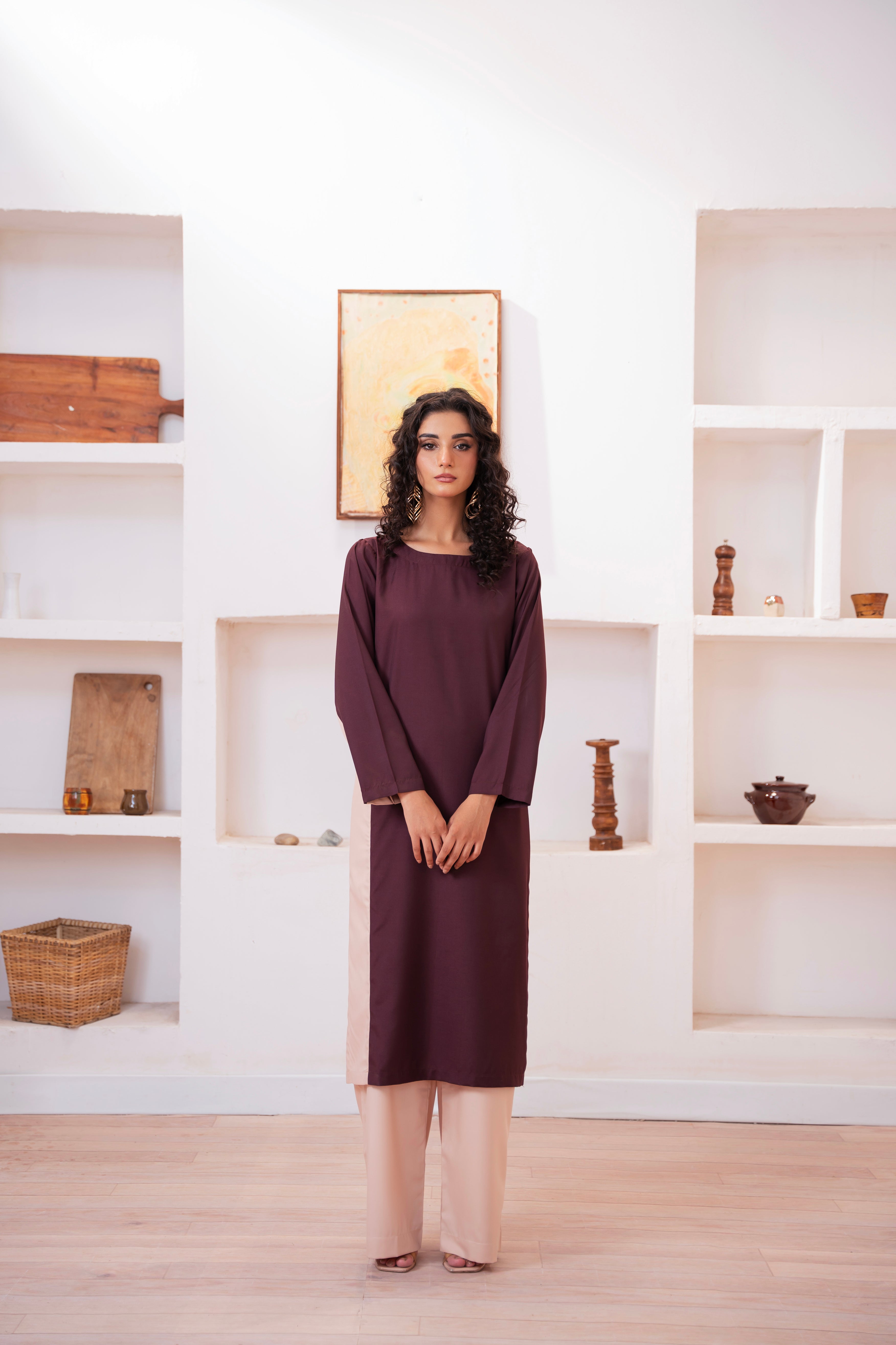 This two-piece dress includes a stylish frock and tailored trouser. This dress is crafted from our new soft crepe fabric, known for its sweat-absorbing properties, ensuring comfort throughout the day. Designed to blend contemporary Western styles with subtle traditional touches. The dress is shown here in size small, perfectly fitted on the model. Length of Shirt, Sleeve Opening & Shirttail are as per Design. Actual color may vary slightly from what appears on your screen due to lighting.