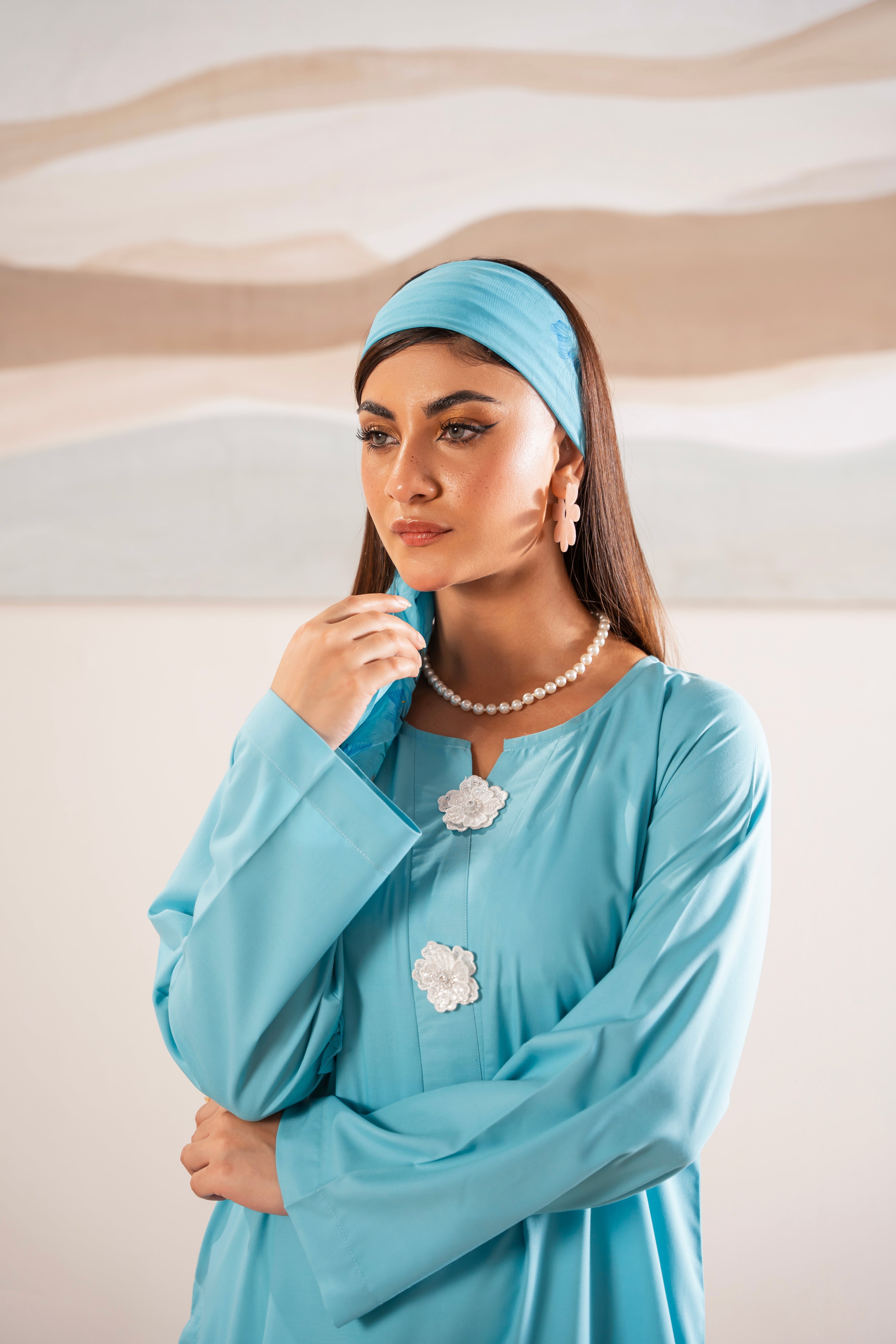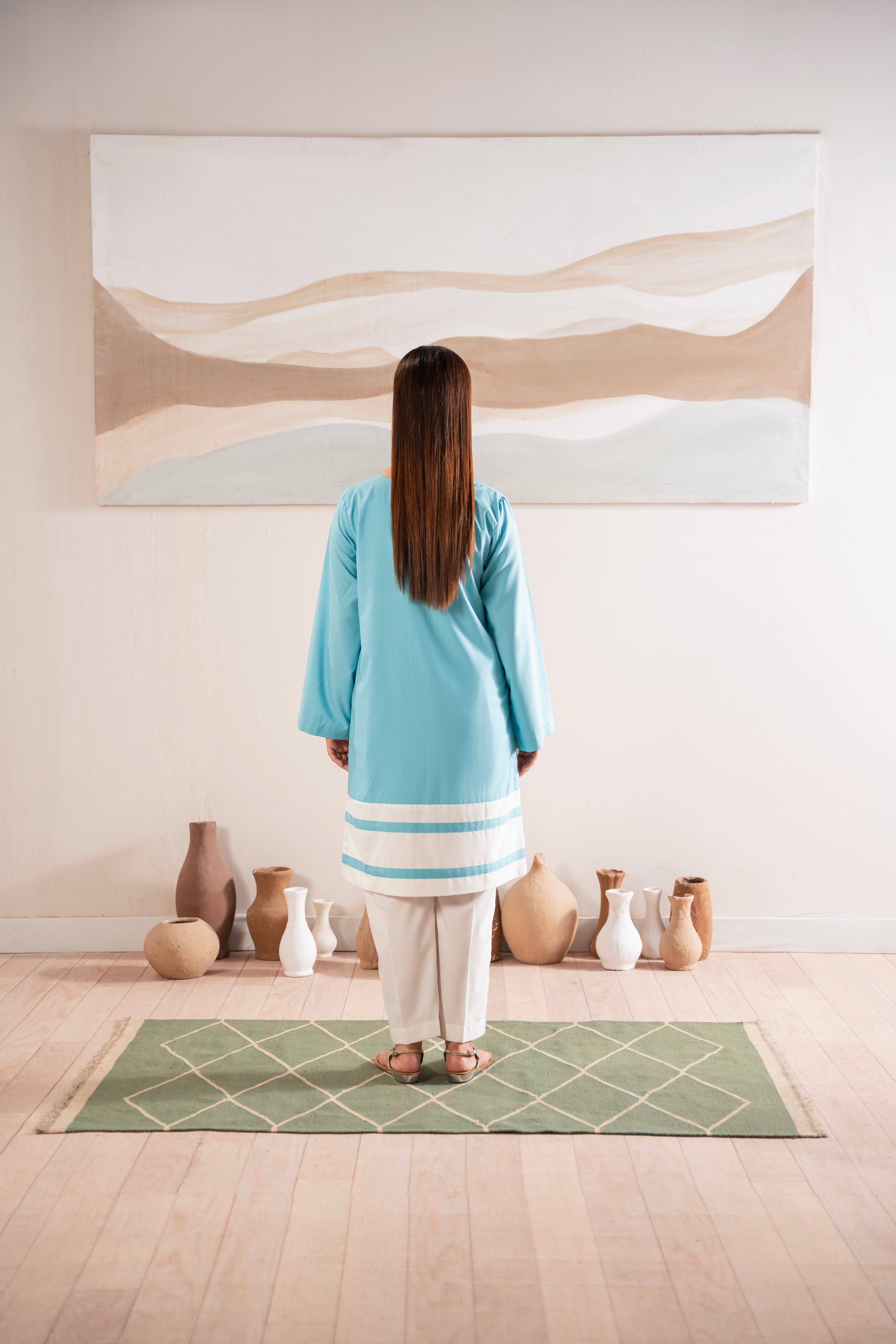This two-piece dress includes a stylish shirt and tailored trouser. This dress is crafted from our new soft crepe fabric, known for its sweat-absorbing properties, ensuring comfort throughout the day. Designed to blend contemporary Western styles with subtle traditional touches. The dress is shown here in size small, perfectly fitted on the model. Length of Shirt, Sleeve Opening & Shirttail are as per Design. Actual color may vary slightly from what appears on your screen due to lighting.