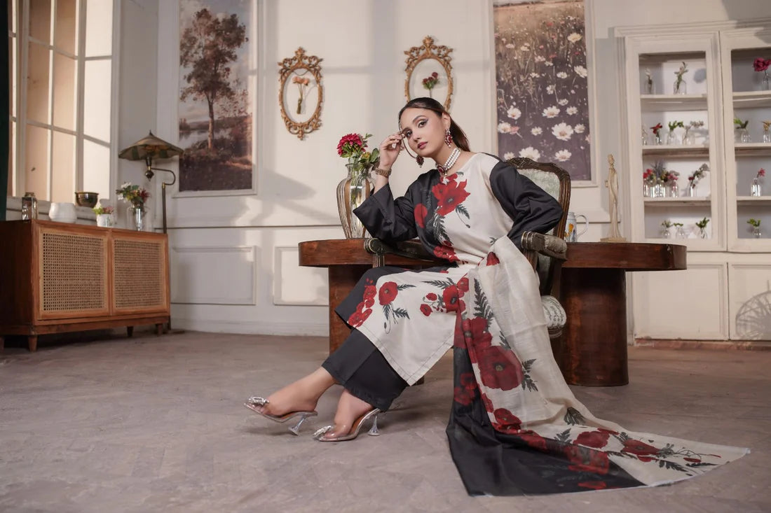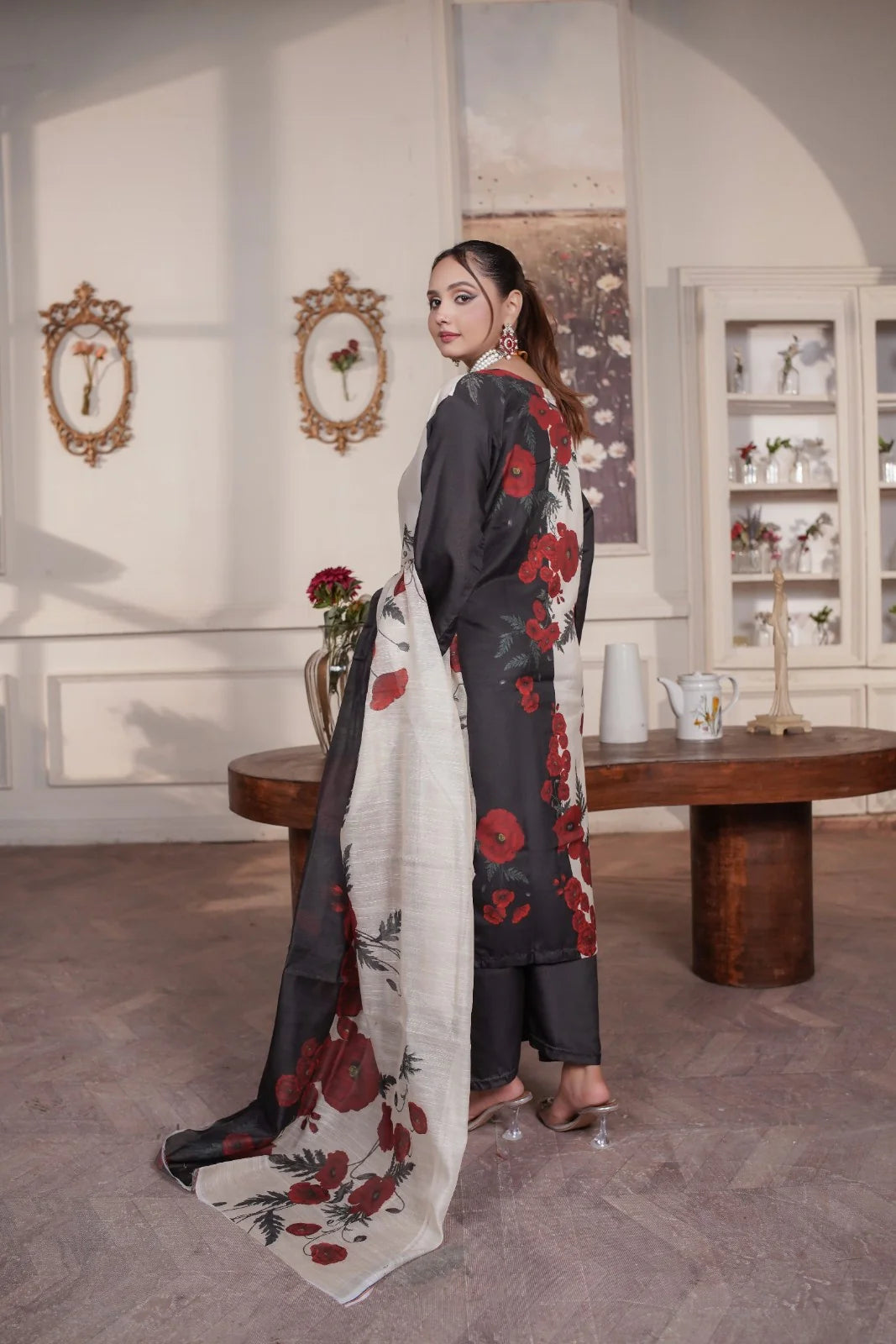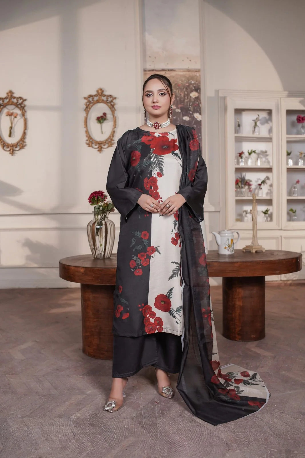 ✔ Design: A 3-piece set (kurta + Dupatta + straight-trousers/shalwar) with a modern, relaxed fit.