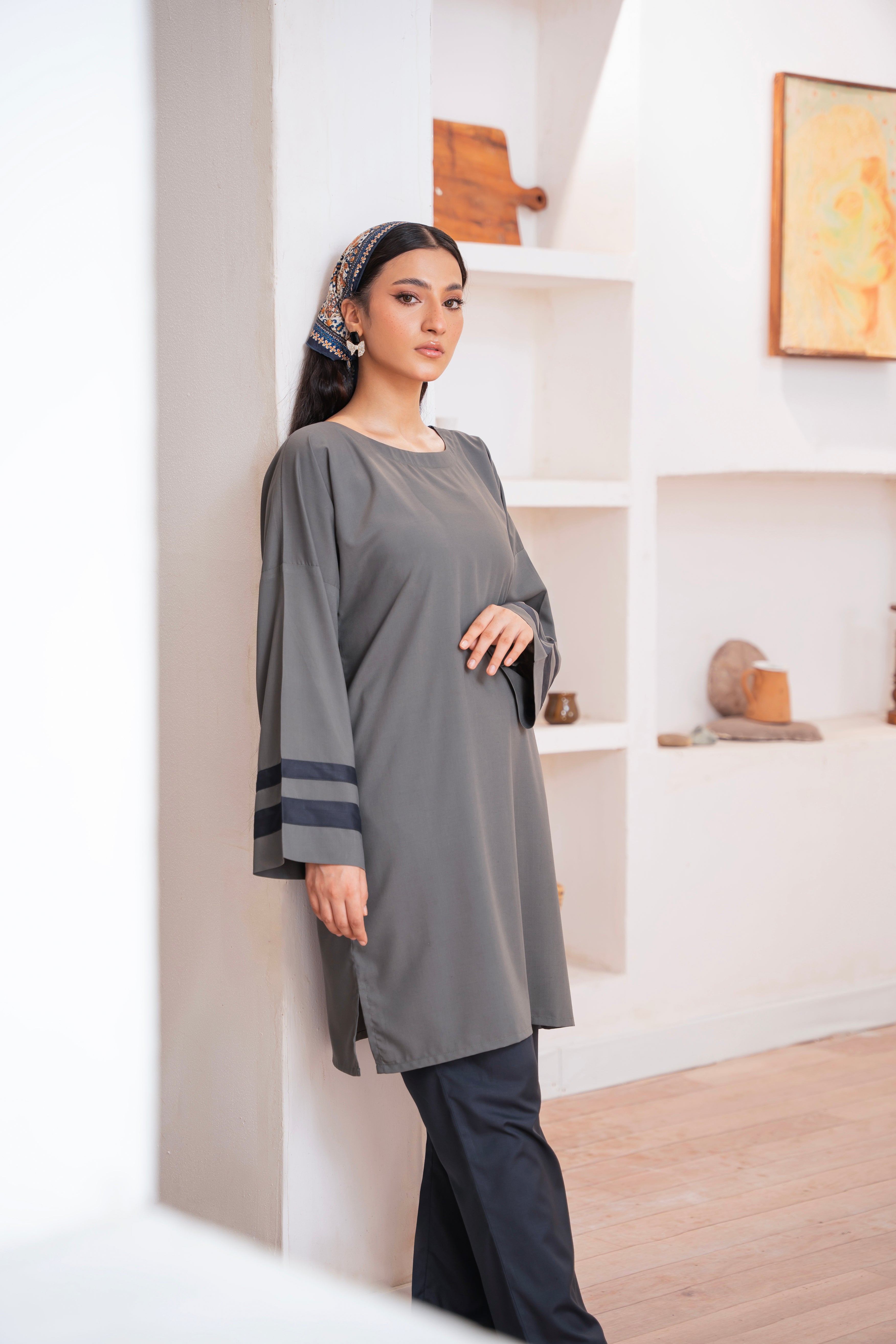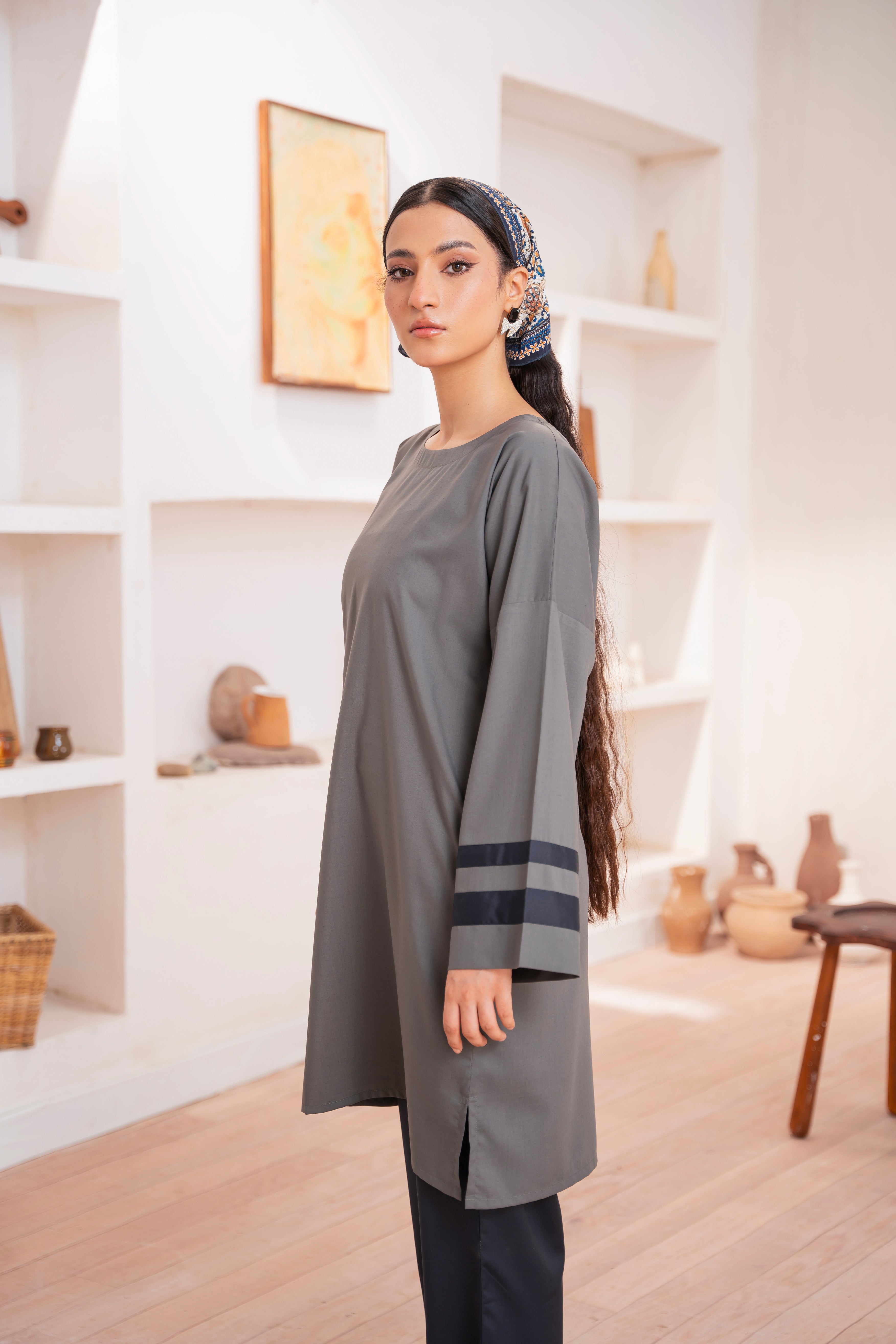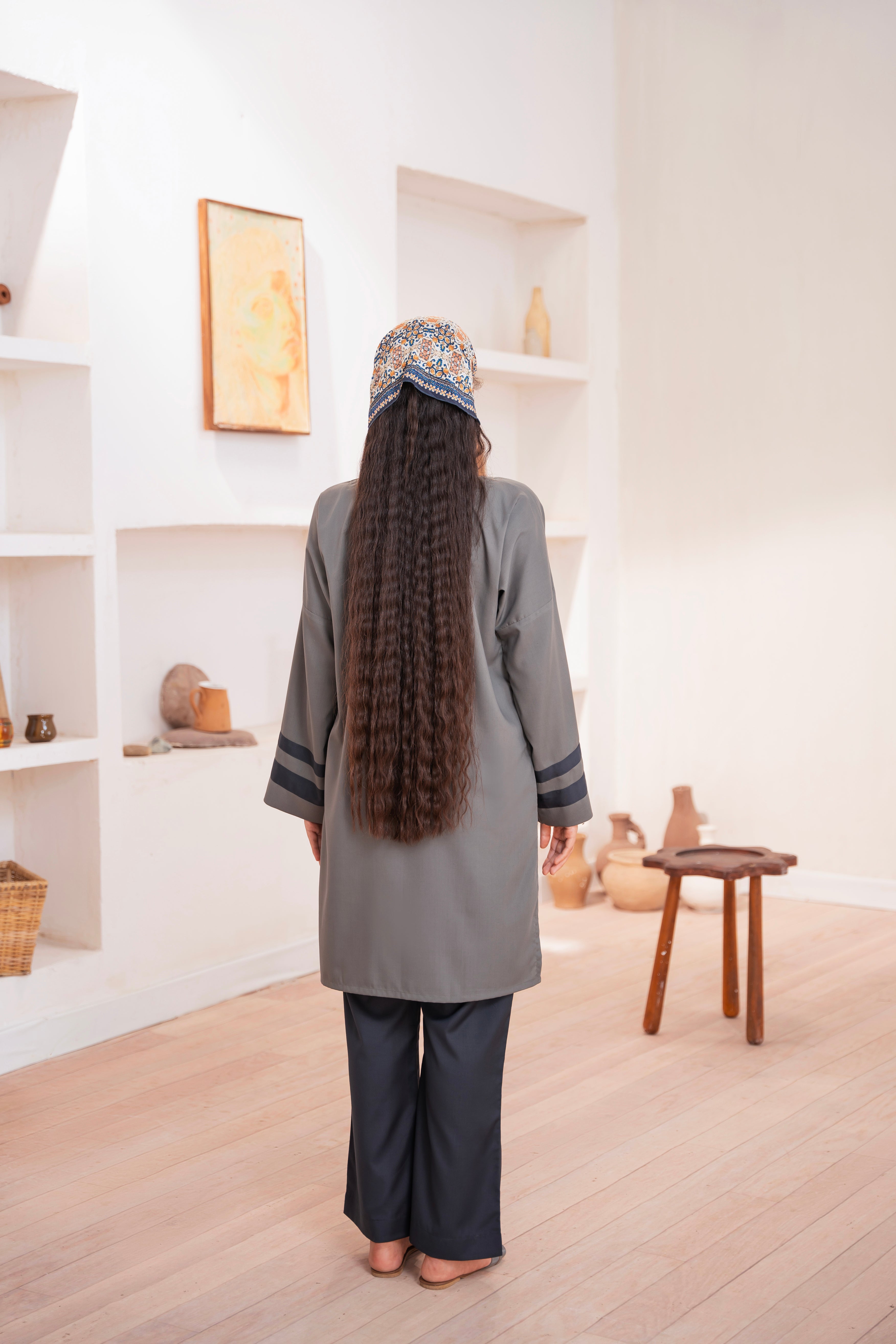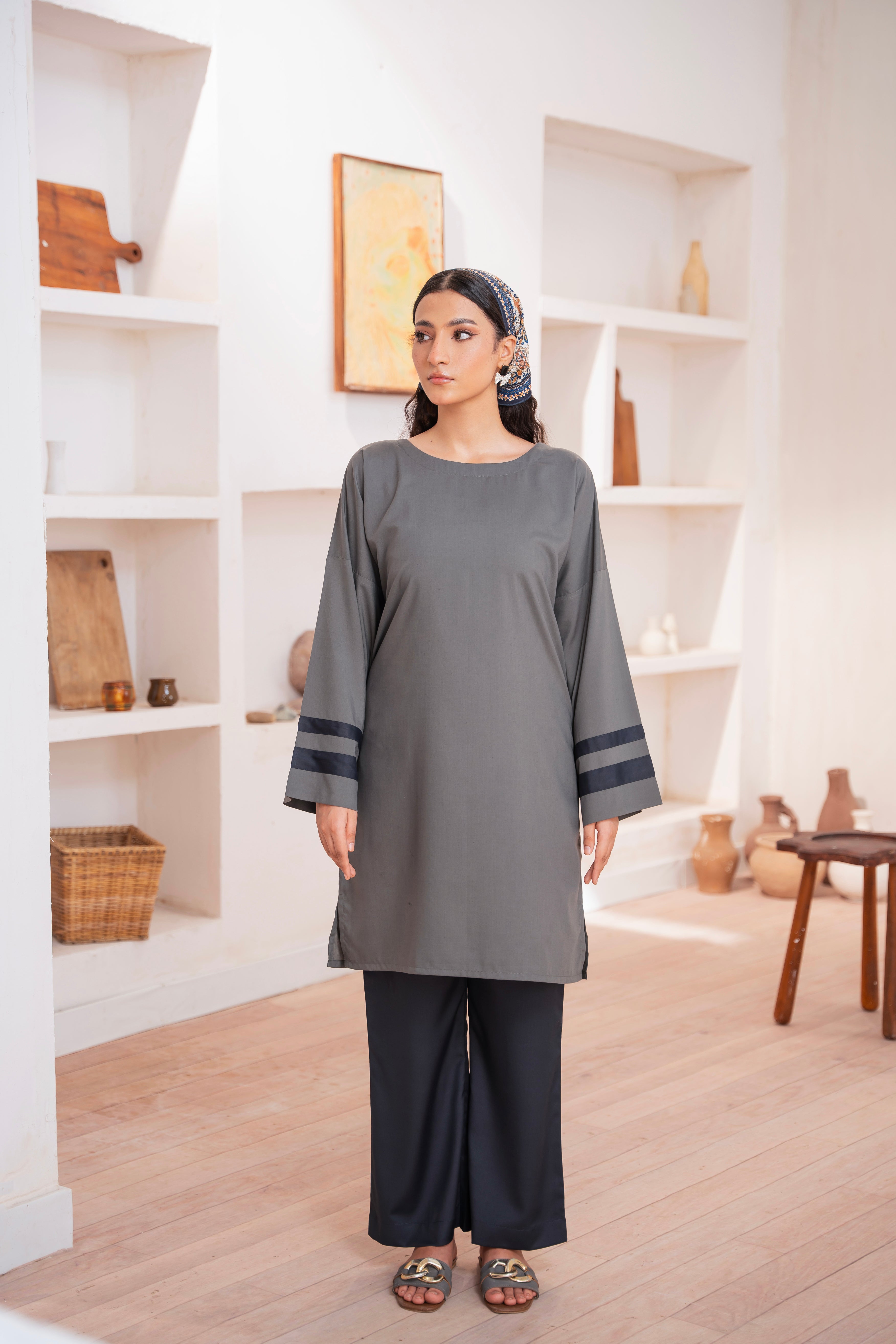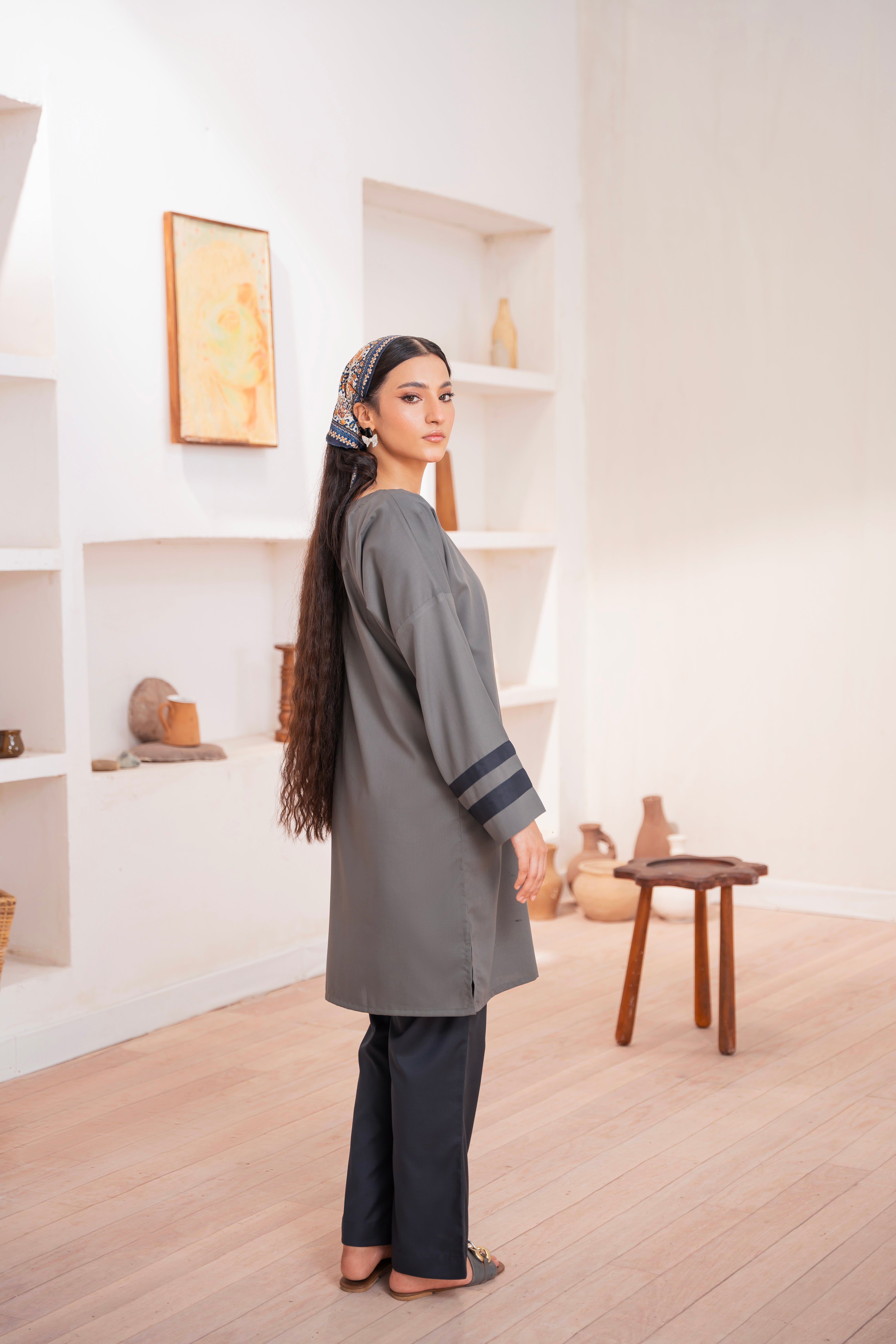 This two-piece dress includes a stylish shirt and tailored trouser. This dress is crafted from our new soft crepe fabric, known for its sweat-absorbing properties, ensuring comfort throughout the day. Designed to blend contemporary Western styles with subtle traditional touches. The dress is shown here in size small, perfectly fitted on the model. Length of Shirt, Sleeve Opening & Shirttail are as per Design. Actual color may vary slightly from what appears on your screen due to lighting.