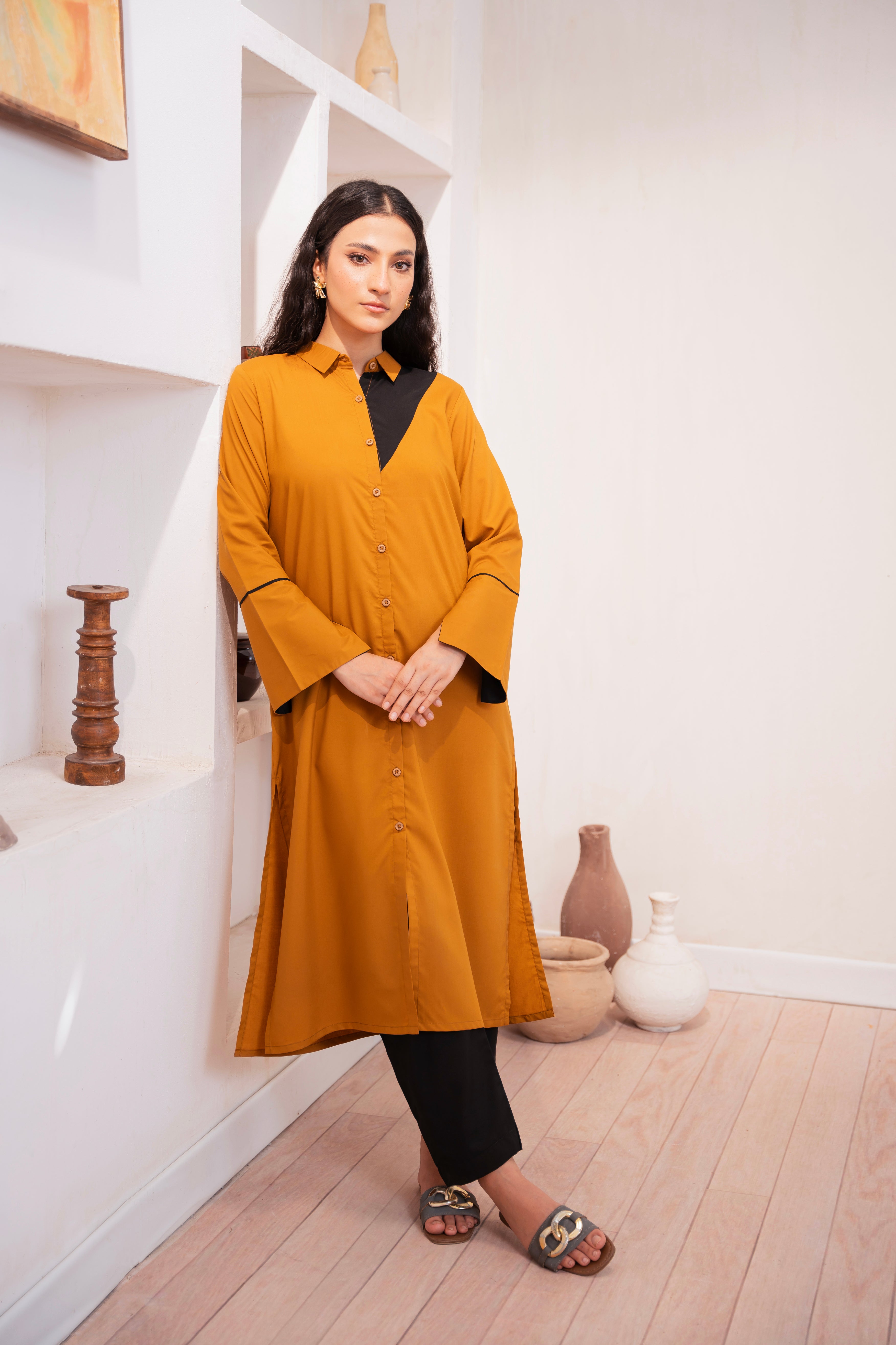 This two-piece dress includes a stylish frock and tailored trouser. This dress is crafted from our new soft crepe fabric, known for its sweat-absorbing properties, ensuring comfort throughout the day. Designed to blend contemporary Western styles with subtle traditional touches. The dress is shown here in size small, perfectly fitted on the model. Length of Shirt, Sleeve Opening & Shirttail are as per Design. Actual color may vary slightly from what appears on your screen due to lighting.