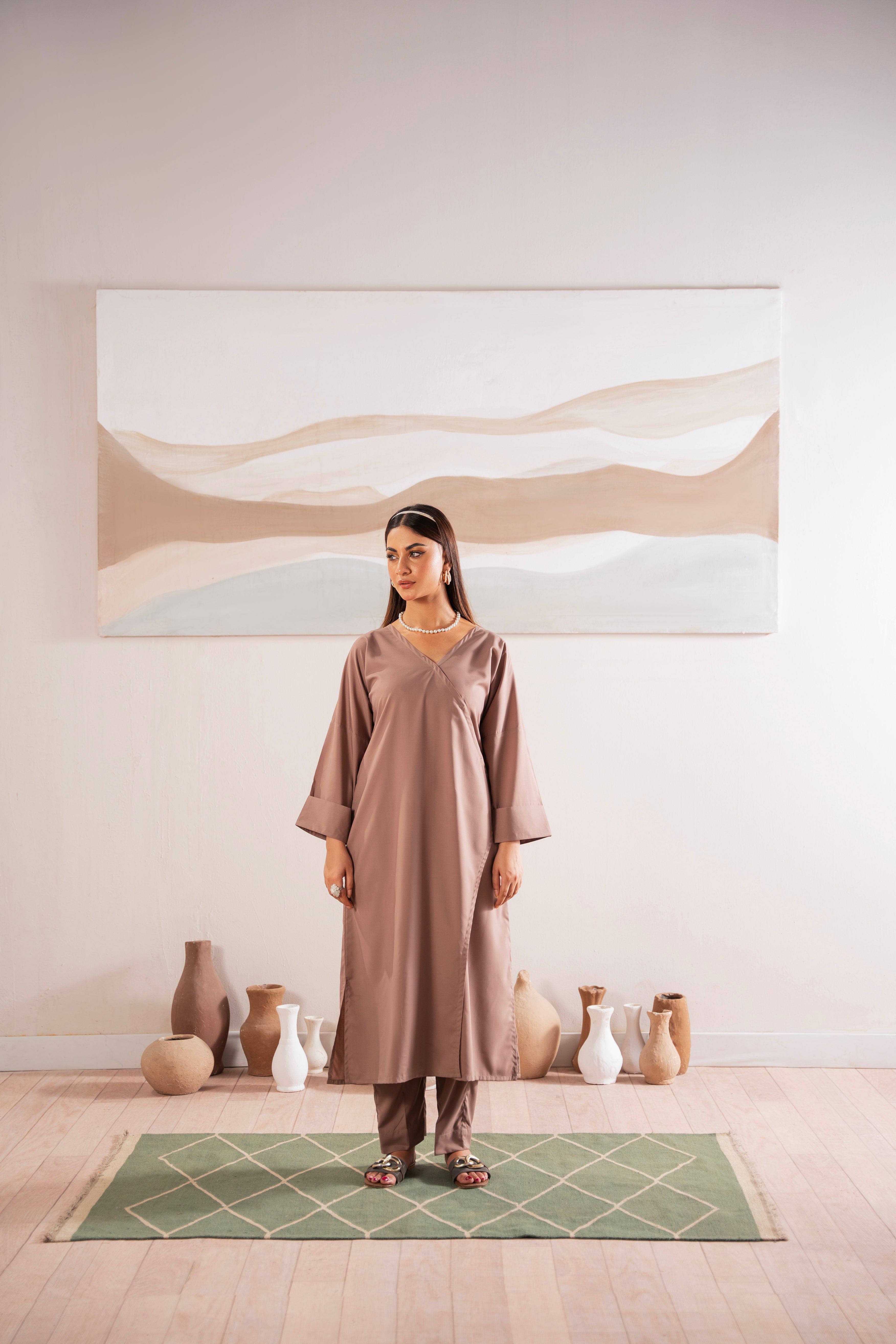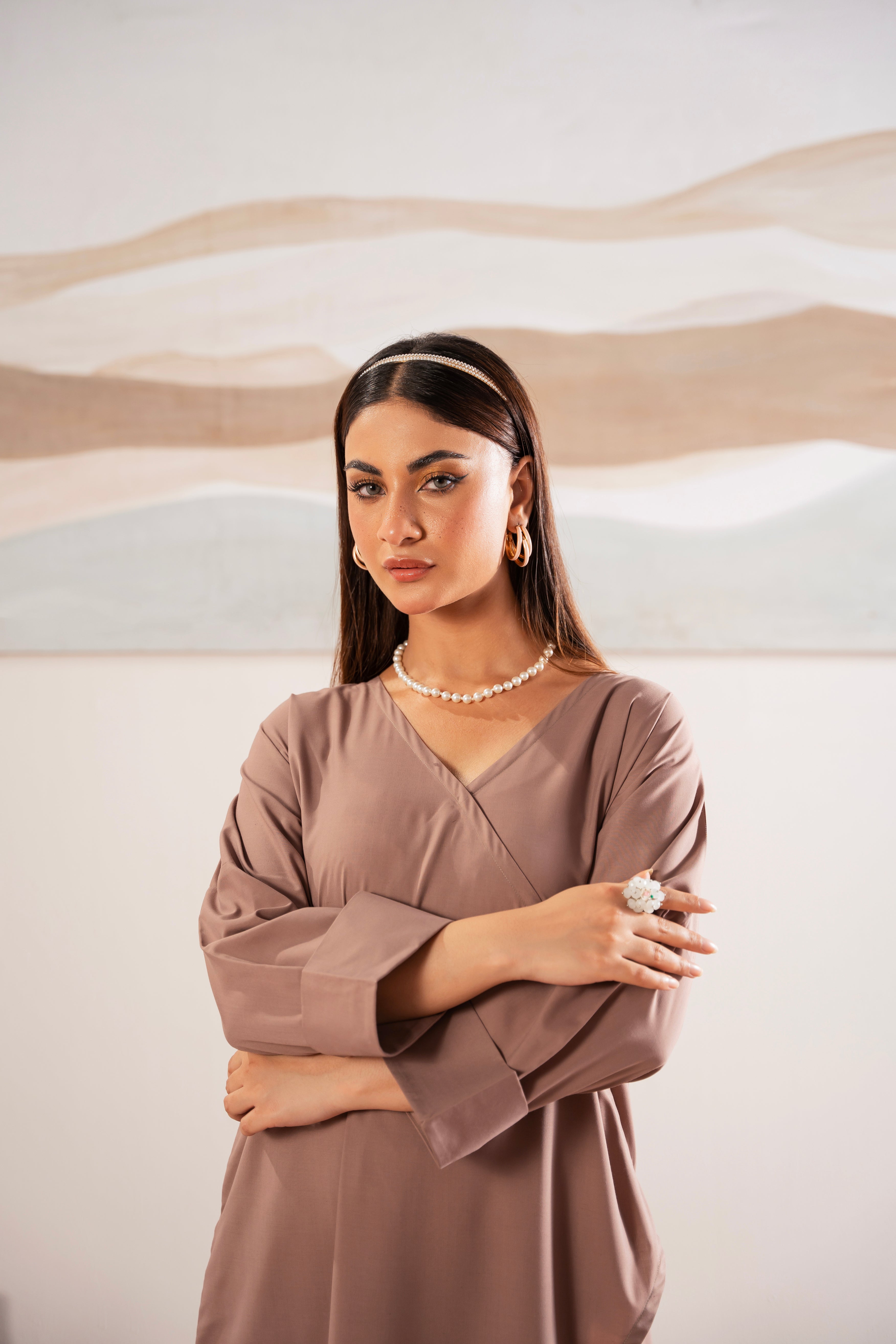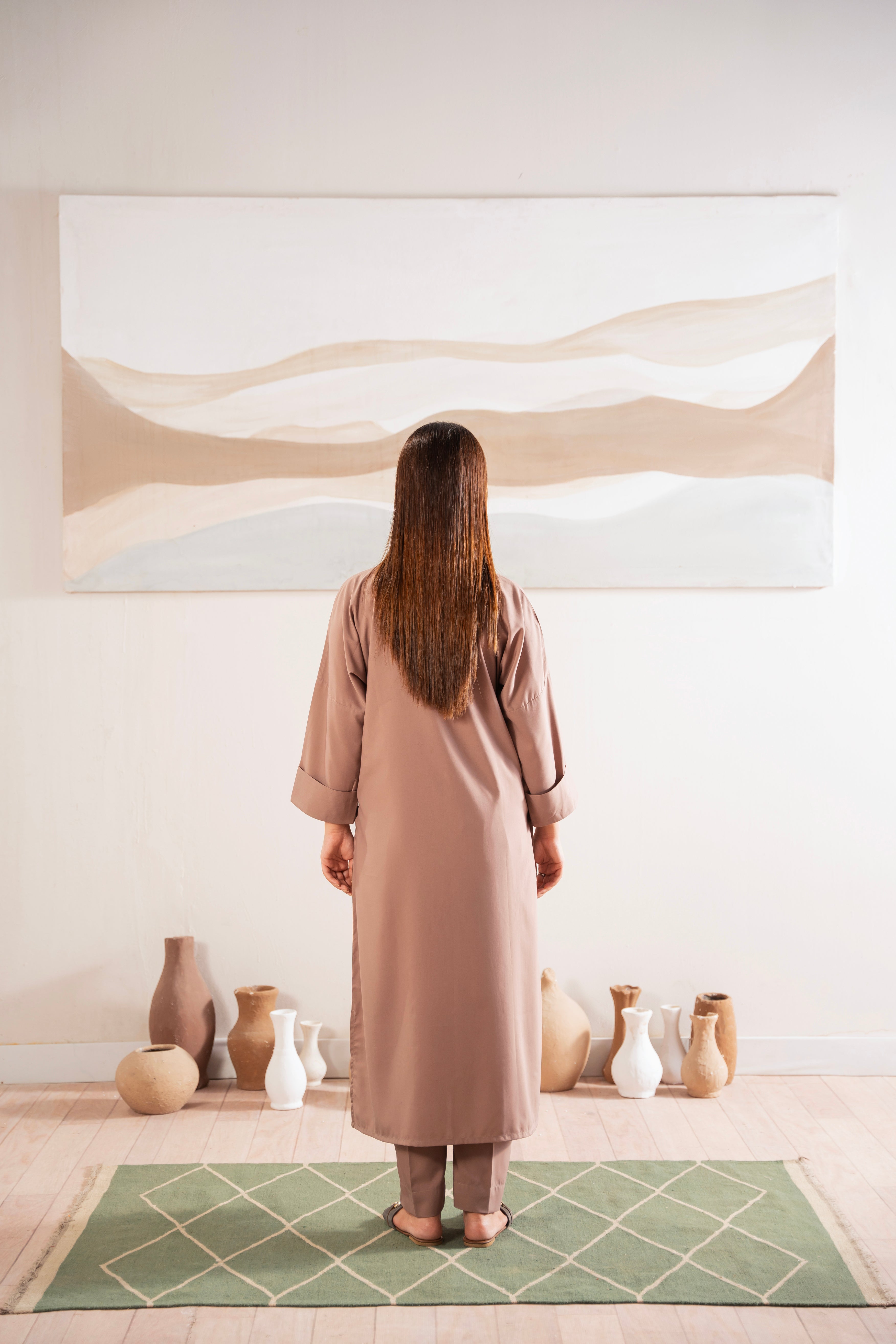 This two-piece dress includes a stylish frock and tailored trouser. This dress is crafted from our new soft crepe fabric, known for its sweat-absorbing properties, ensuring comfort throughout the day. Designed to blend contemporary Western styles with subtle traditional touches. The dress is shown here in size small, perfectly fitted on the model. Length of Shirt, Sleeve Opening & Shirttail are as per Design. Actual color may vary slightly from what appears on your screen due to lighting.