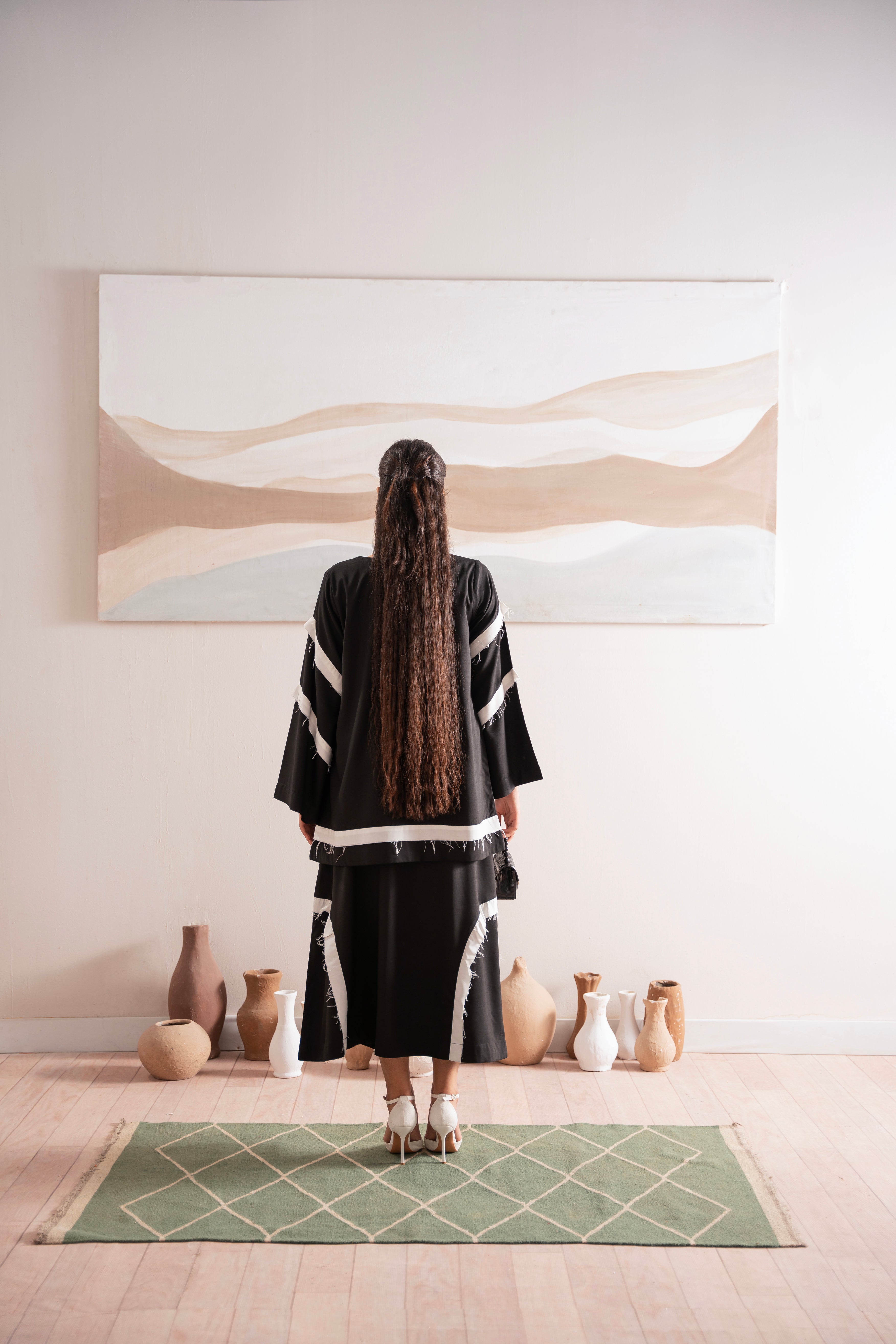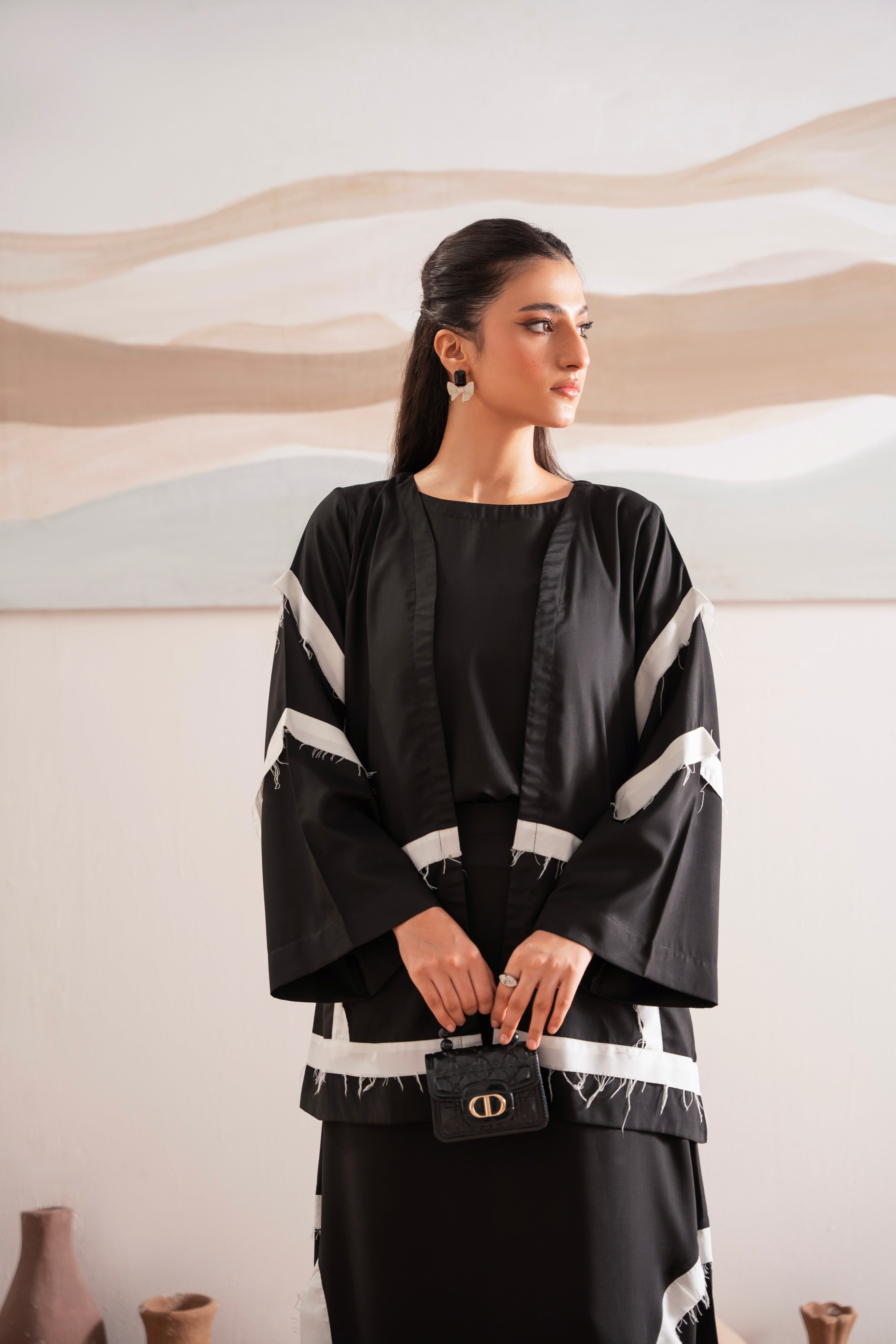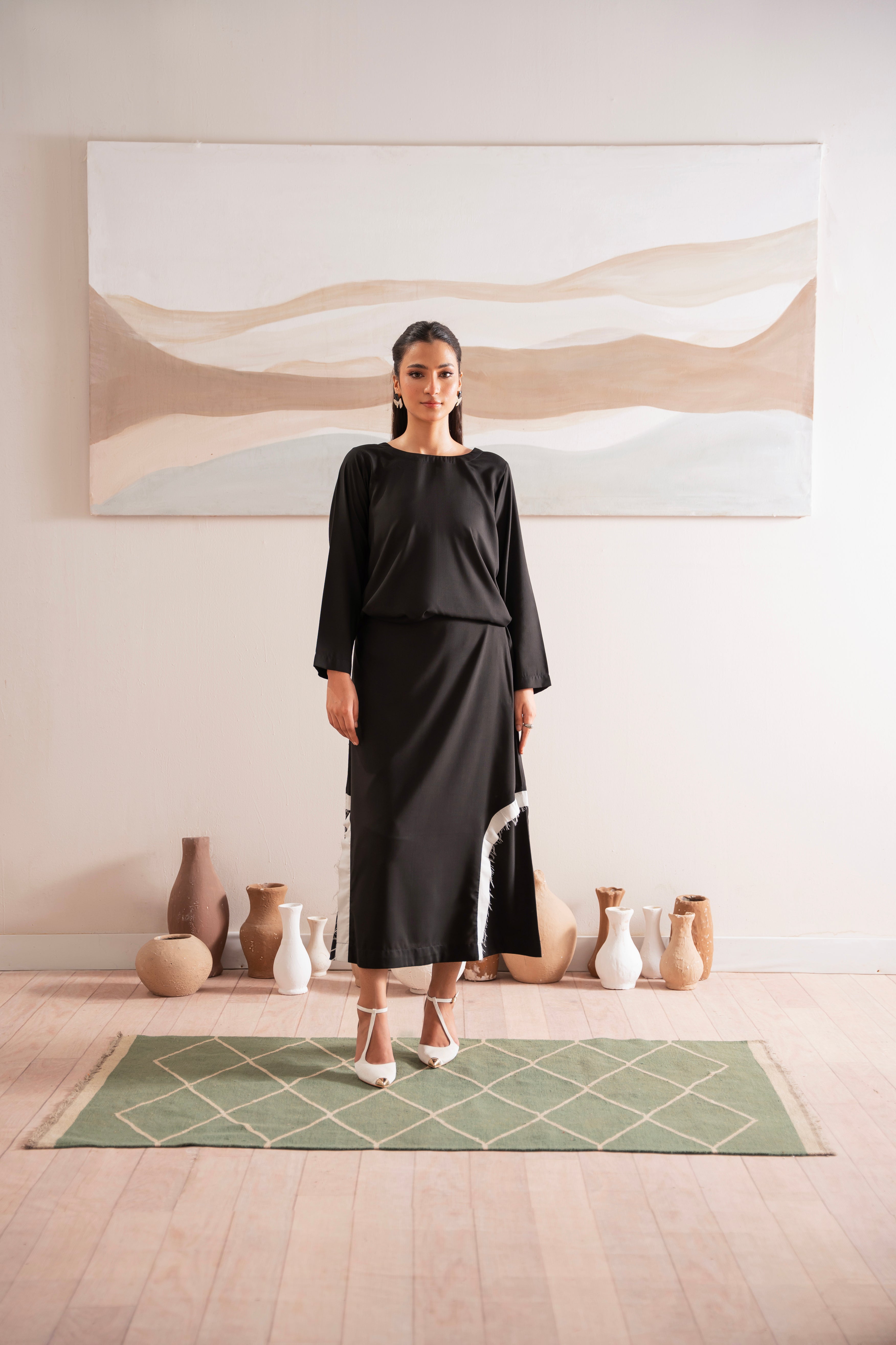This three-piece dress includes a stylish frock, jacket and tailored trouser. This dress is crafted from our new soft crepe fabric, known for its sweat-absorbing properties, ensuring comfort throughout the day. Designed to blend contemporary Western styles with subtle traditional touches. The dress is shown here in size small, perfectly fitted on the model. Length of Shirt, Sleeve Opening & Shirttail are as per Design. Actual color may vary slightly from what appears on your screen due to lighting.
